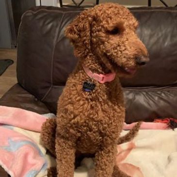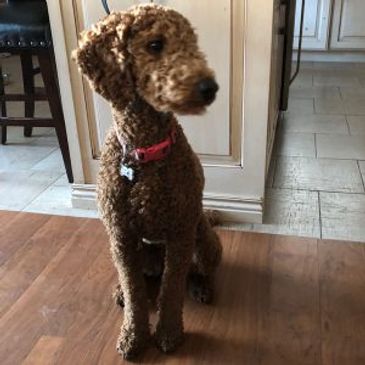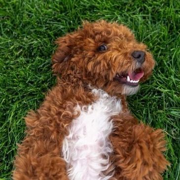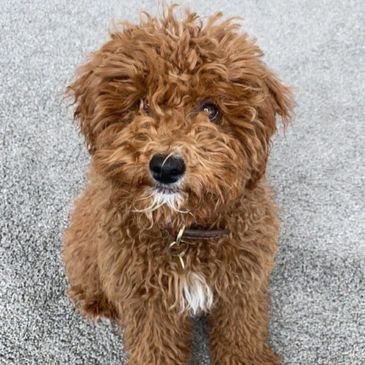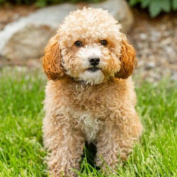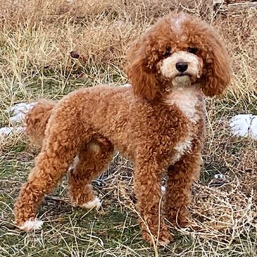 Gryff is an outside AKC Miniature/Toy Poodle Stud that with an easy-going temperament and deep mahogany red coat. He is fully health tested and consistently produces deep red, mini Goldendoodle pups with excellent personalities