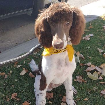 Buster is a 38 pound AKC Chocolate Parti Poodle. He carries for tri-color and we are excited to add him to our program. He is clear for all genetic diseases and is OFA certified for hips and elbows.