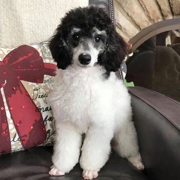 Vinnie is our two-colored Mini Poodle. We can't wait to see the puppies he creates.