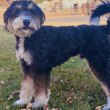 Mickey is our Tri-Color Mini Bernedoodle. We can't wait to see the puppies he creates.