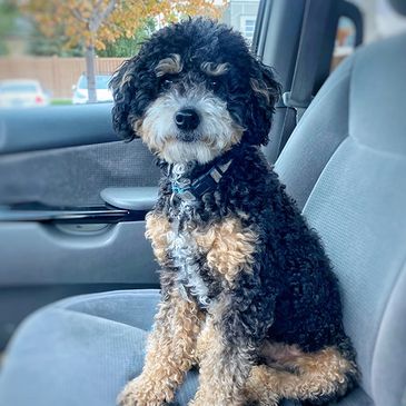 Jasper is an external stud. Hi is a Multi-gen Mini Bernedoodle who carries the proper genetics to breed to a Bernese with all puppies expected to have wavy hair and the Doodle look.