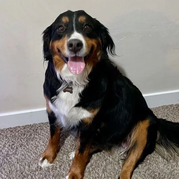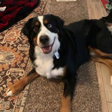 Scout is our newest Bernese Mountain Dog. We've raised her from a puppy. She is a wonderful dog that is as sweet as she is beautiful. We could not be happier with her calm and loving demeanor towards both people and animals.